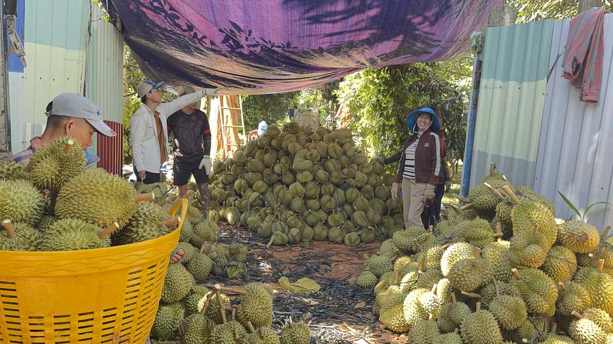 Farmers harvesting Dona durians in the Central Highlands.