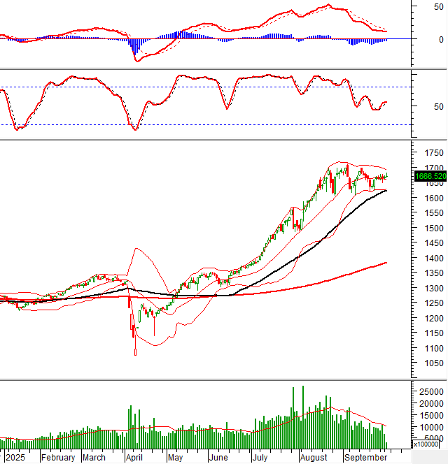 During the morning trading session on October 2, 2025, the VN-Index narrowed its gains while forming a Long Upper Shadow candlestick pattern.