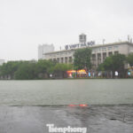 On the afternoon of September 30th, under the influence of Typhoon No. 10, Hanoi experienced heavy rainfall, leading to severe flooding on numerous streets. The Old Quarter was particularly hard-hit, with deep water inundating its roads. Additionally, the water from Hoan Kiem Lake overflowed its banks.