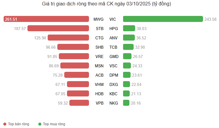 Trading: Major indices unanimously declined in the October 3 session. The VN-Index retreated to 1,645.82 points, a 0.42% decrease from the previous session; the HNX-Index also saw a sharp drop of 1.41%, closing at 265.75 points. For the week, the VN-Index lost 14.88 points (-0.9%), while the HNX-Index plummeted by 10.31 points (-3.73%) compared to the previous week.