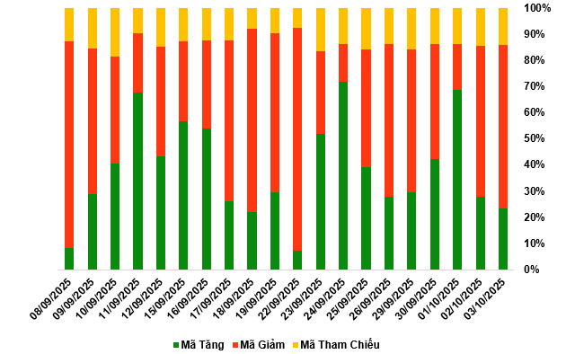 At the close of trading on October 3, 2025, the market saw 66 stocks rise, 176 fall, and 40 remain unchanged. Foreign investors continued their net selling streak, offloading a total of 1.23 million CW.