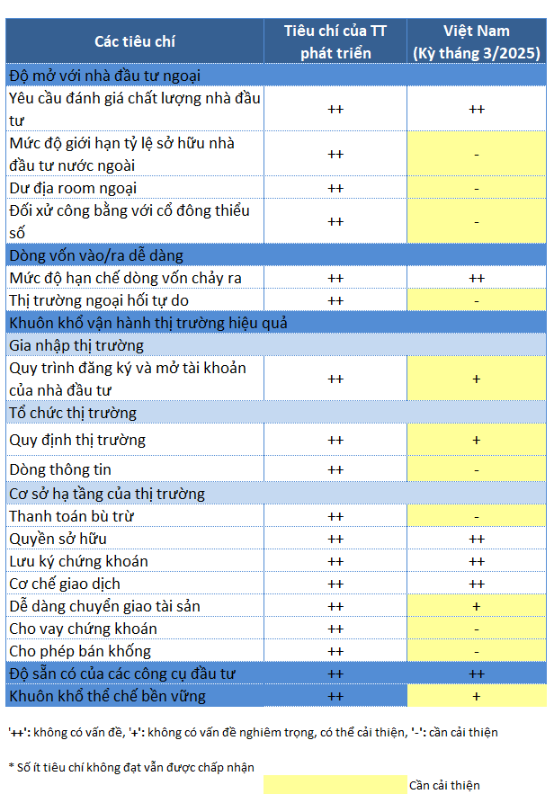 The journey to becoming a developed market is even longer, as Vietnam still needs to improve 14 out of 22 criteria according to FTSE standards. For MSCI, 12 out of 18 market accessibility criteria require improvement.