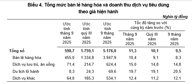 The influx of tourists has also spurred notable growth in retail and service revenues. Retail sales of goods reached nearly 5.18 quadrillion VND, up 9.5% year-over-year, with food and essentials—key to tourism and services—seeing the highest increase at 10.3%.