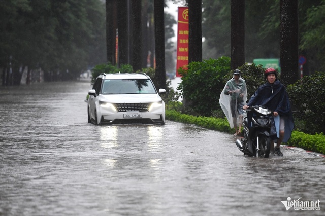 ![]() Hanoi residents navigate streets turned rivers. Photo: Nam Khánh |