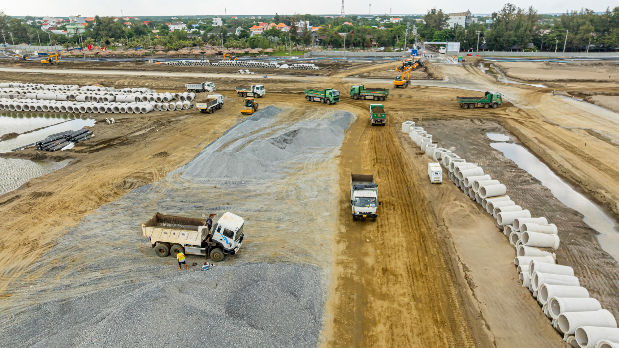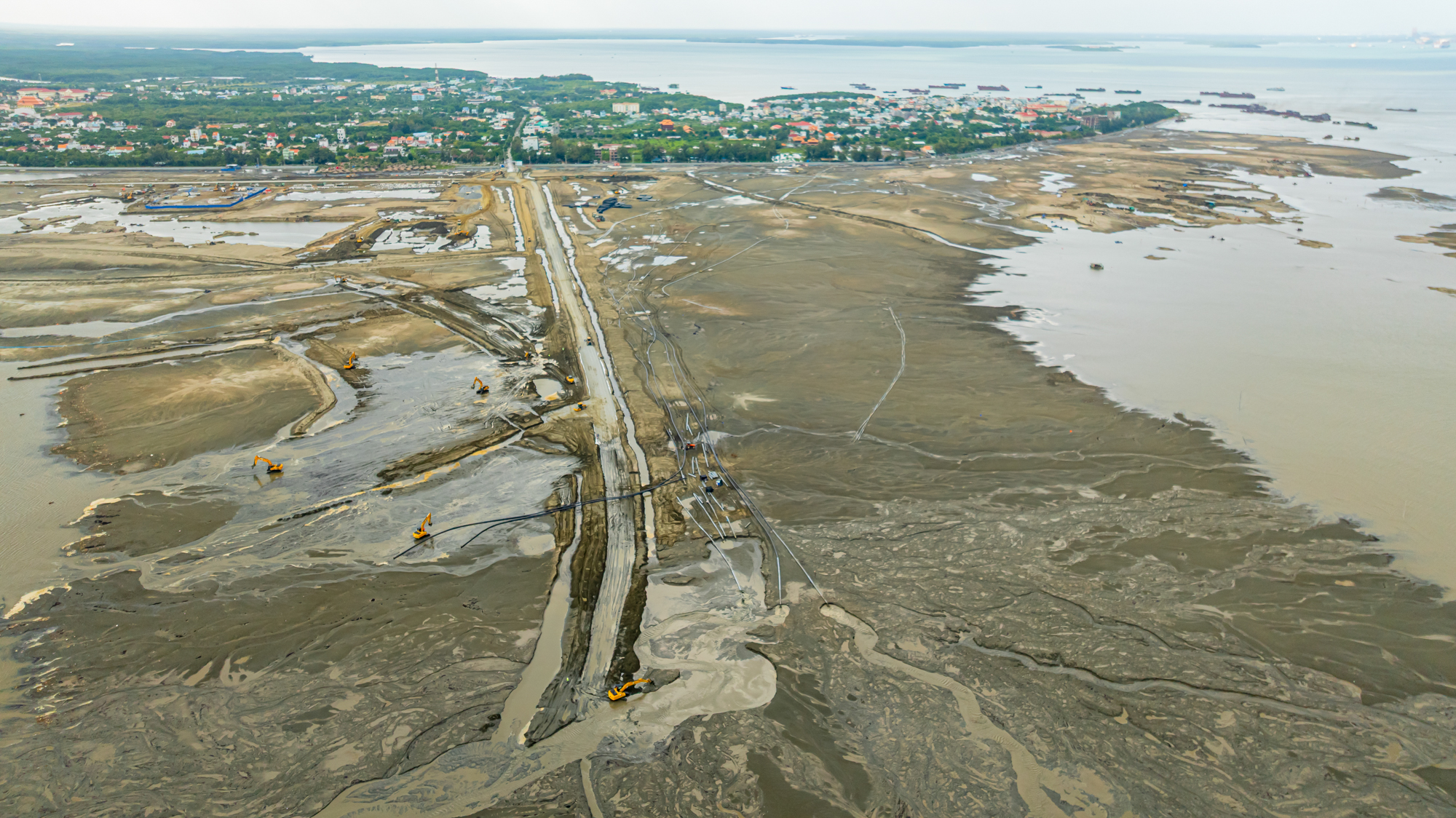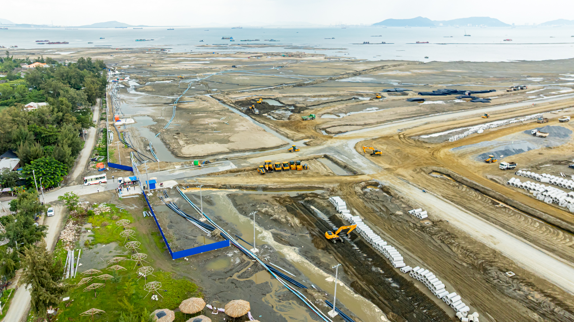 Hundreds of barges, excavators, and trucks were mobilized for land reclamation, land leveling, and material transportation. Within just over 5 months, the groundwork was largely completed.