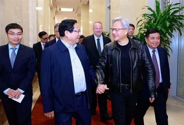 Prime Minister Phạm Minh Chính welcomes NVIDIA’s Chairman and senior leaders on their second visit to Vietnam. Photo: VGP/Nhật Bắc