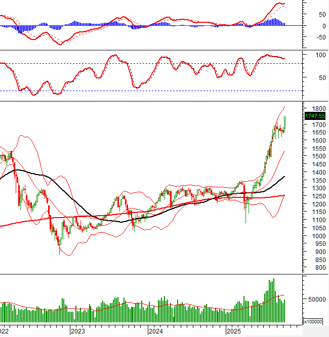 During the week of October 6-10, 2025, the VN-Index reached a new all-time high, forming a Big White Candle pattern, reflecting investor optimism. However, trading volume needs to consistently surpass the 20-week average to support a more sustainable upward trend in the future.