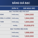 According to data from Phu Quy Jewelry Corporation, silver prices surged today, with 999 silver (1 tael) listed at VND 1,944,000 per tael (buy) and VND 2,004,000 per tael (sell). Over the past month, buyers have seen a 19.8% profit, and a remarkable 77% gain over the past year.
