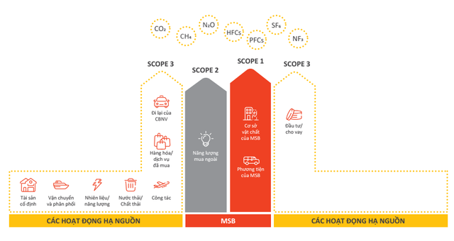 MSB is among Vietnam’s first banks to measure and control carbon emissions from banking operations. In 2024, partnering with S&P Global – Sustainable 1, MSB collected data and calculated emissions across all three scopes, including upstream (supply chain) and downstream (loan portfolio), adhering to GHG Protocol, PCAF methodology, and TCFD reporting guidelines.