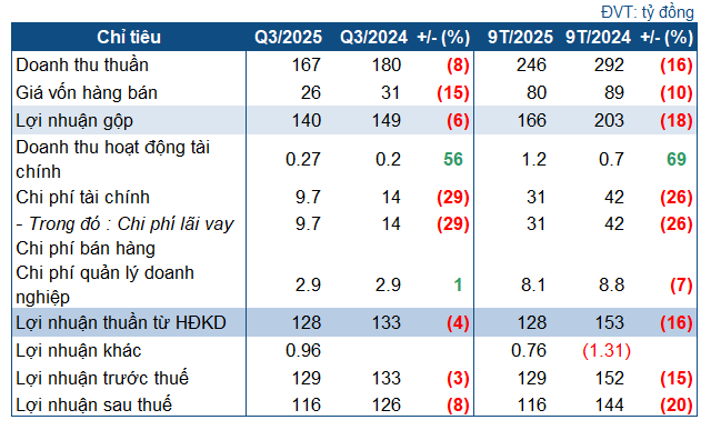 According to the Q3/2025 financial report, BHA recorded a net revenue of VND 167 billion, an 8% decrease compared to the same period last year. The cost of goods sold also declined by 15%, resulting in a 6% drop in gross profit to VND 140 billion.