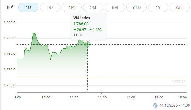 The market opened with enthusiasm on October 14. The VN-Index soared nearly 30 points in the first 40 minutes, reaching 1,793.