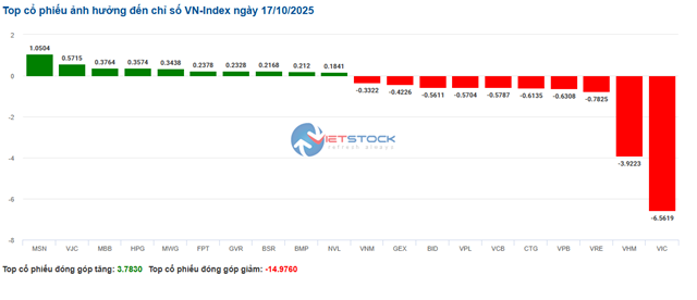 Top 10 Stocks Impacting VN-Index on October 17, 2025 (in Points) |