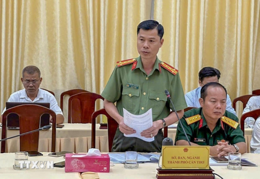 Senior Colonel Nguyen Thanh Binh, Deputy Director of Can Tho City Police, announced the initiation of legal proceedings at the press conference of the People’s Committee of Can Tho City on October 16. (Photo: Thanh Liem/TTXVN)