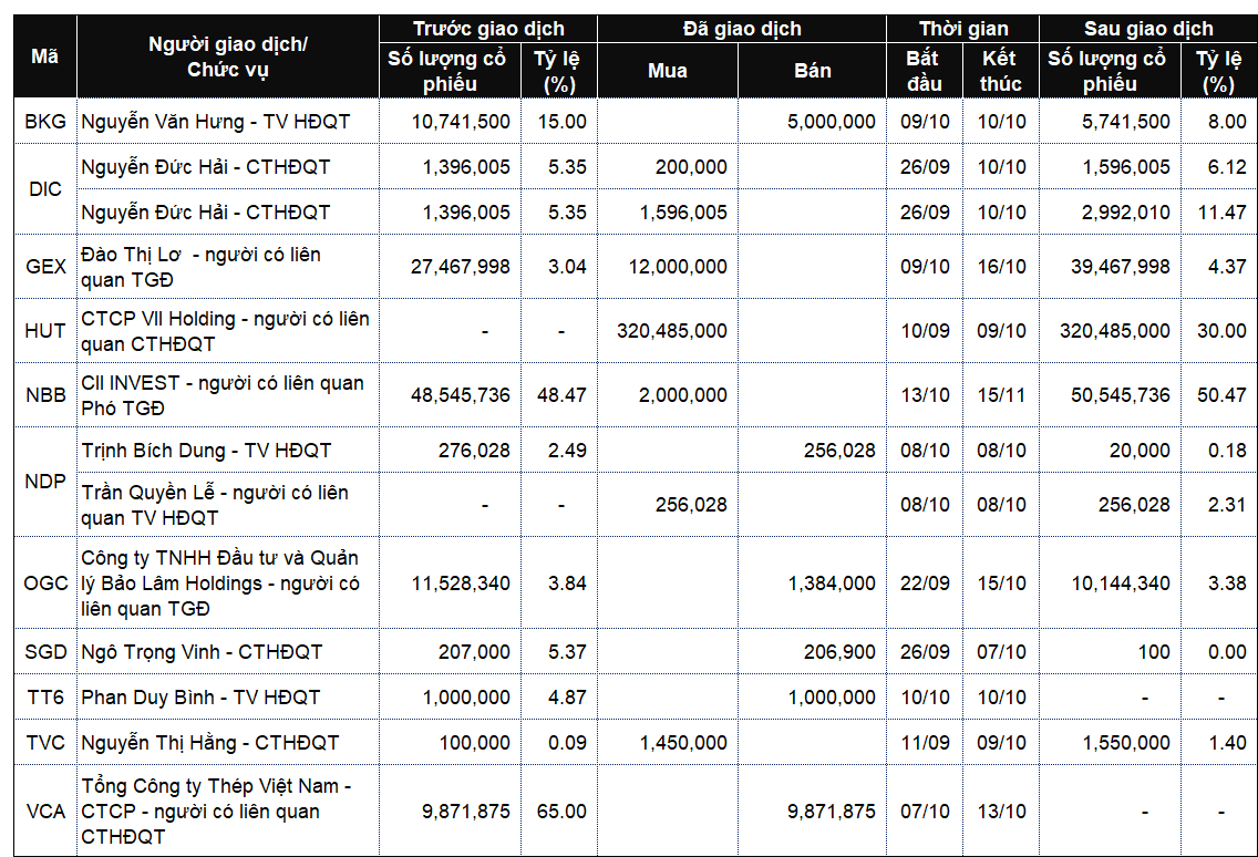 The transaction took place from September 22 to October 15. Following this sale, Bảo Lâm Holdings’ ownership in OGC decreased from 3.84% to 3.38%, equivalent to over 10.1 million shares. The estimated transaction value, based on an average price of 4,186 VND/share during the period, is approximately 5.8 billion VND.