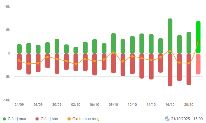 Foreign Investor Cash Flow: Foreign investors returned to strong net buying on October 21, 2025. If foreign investors maintain this action in upcoming sessions, the situation will improve more positively.