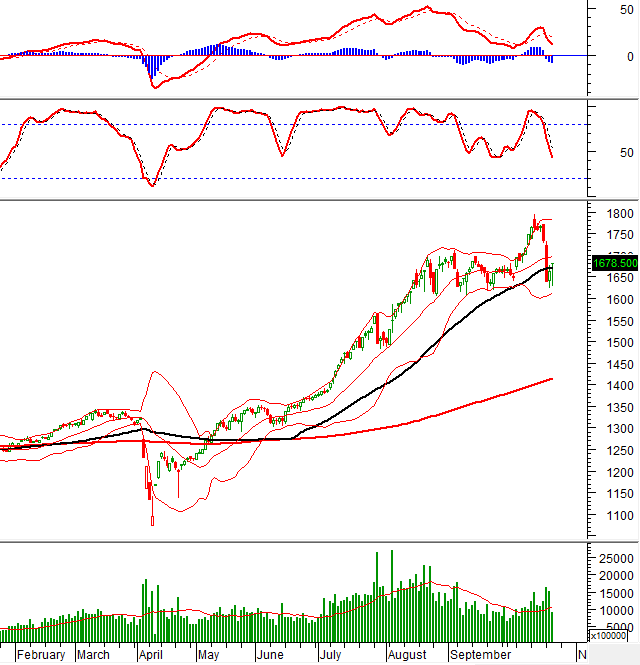 – The market witnessed an impressive rebound on October 22. The VN-Index started with a slight increase but soon stalled as buying momentum weakened. The significant drop in liquidity compared to the previous session indicated heightened investor caution, particularly as key sectors like banking and real estate weakened after the previous day’s recovery. Additionally, foreign investors’ return to net selling further deprived the market of the necessary support to sustain the morning’s recovery. In the afternoon session, the situation turned more negative as leading stocks continued to decline, pushing the VN-Index down to 1,630 points. However, buying interest at lower levels re-emerged, driving the index back into positive territory by the close. The VN-Index ended the day up 0.91%, at 1,678.5 points.