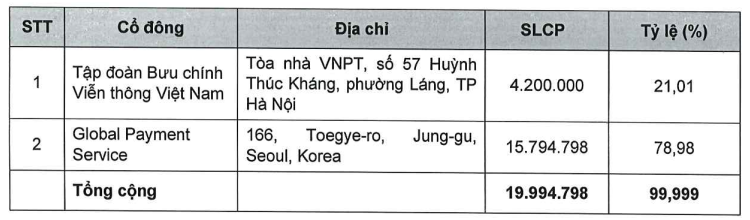 As of early September 2025, VNPT EPAY’s charter capital is nearly VND 200 billion. Major shareholders include VNPT with over 21% and GPS with 78.98%. Mr. Kim Je Hee, a South Korean national, serves as CEO and legal representative.