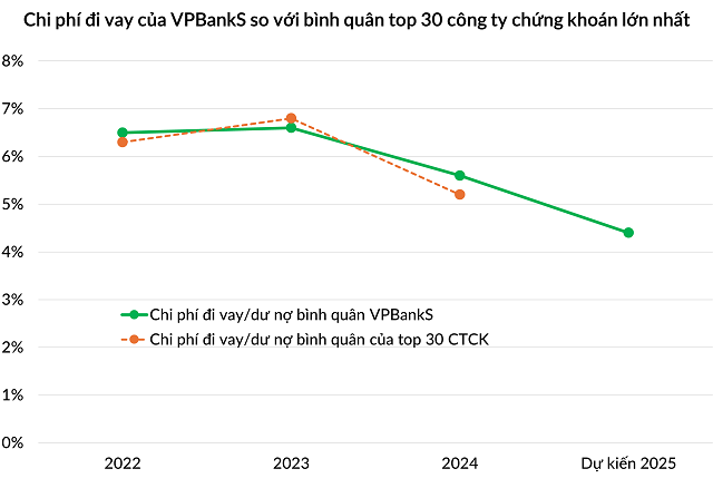 VPBankS’ borrowing costs are lower than the securities industry average. (Image: VPBankS).