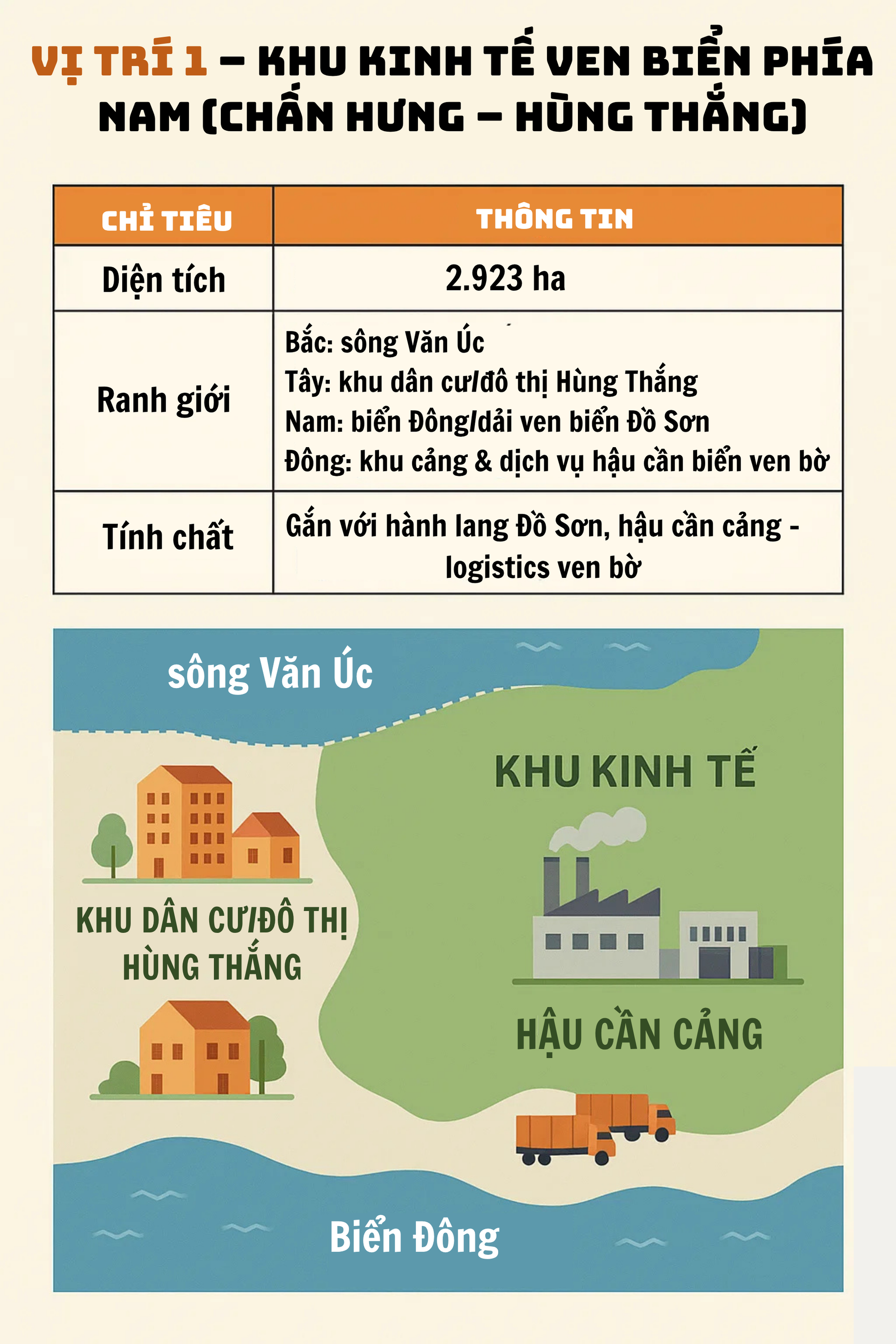 Aiming to become a competitive regional and international hub for production, logistics, commerce, high-tech services, and finance, the zone will promote advanced industries, innovation, digital transformation, and green growth. It is structured into functional zones, including production, port and port logistics, logistics centers, commercial and service areas, and other designated zones.