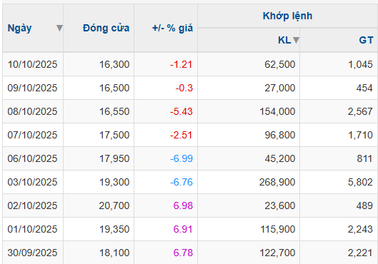 Prior to the suspension, VMD shares experienced a six-day consecutive decline from October 3 to 10, with the first two sessions (October 3-4) hitting the lower limit. This downturn followed a three-day rally from September 30 to October 2, during which the stock reached a near two-year high of VND 20,700 per share on October 2. Subsequently, it plummeted over 20% to VND 16,300 per share within a week, just before the suspension.