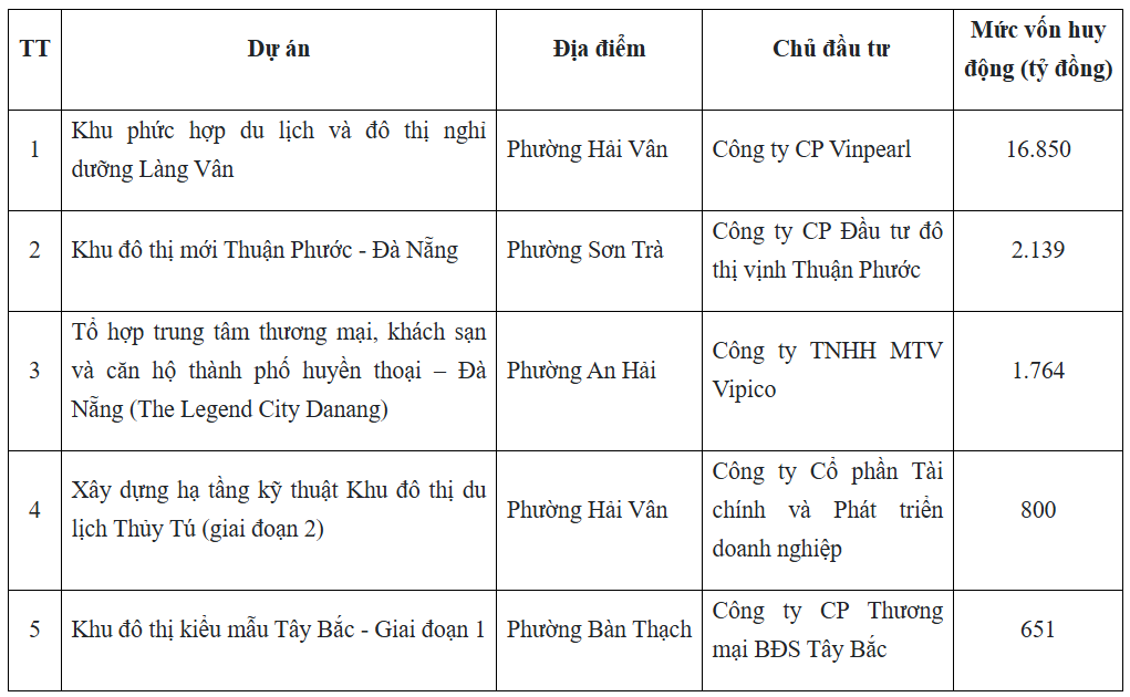 Accordingly, five projects are eligible to raise capital, with a total investment of over VND 22.2 trillion. The Van Village Tourism and Urban Resort Complex project in Hai Van Ward, developed by Vinpearl Joint Stock Company (HOSE: VPL), has the largest capital mobilization at VND 16,850 billion.