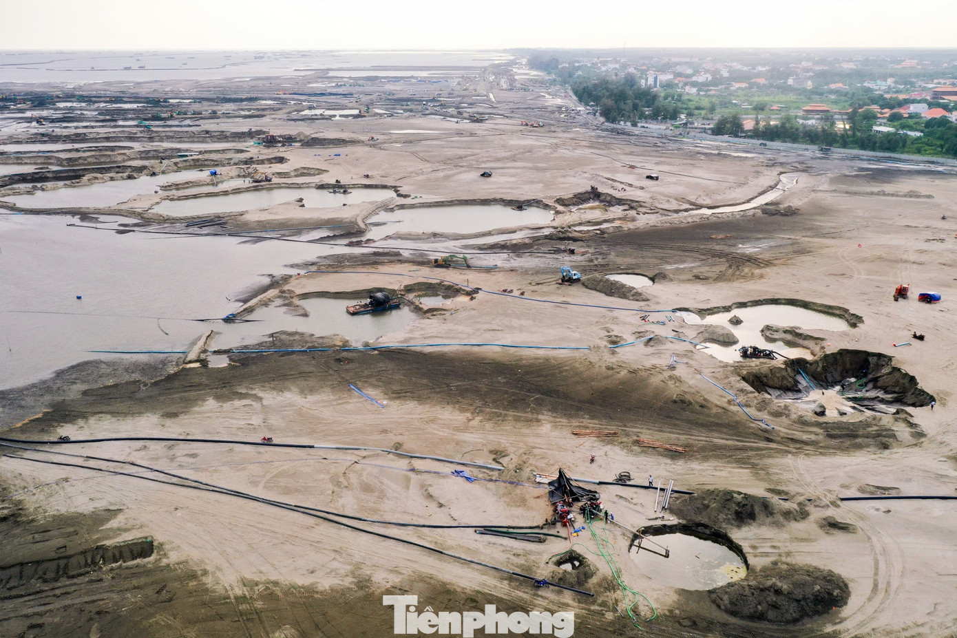 The project utilizes advanced sand spraying technology and a unique balanced excavation-backfilling method, sourcing most fill material from within the planned area to minimize environmental impact.