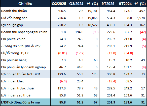 In contrast, financial activities saw a decline, with revenue dropping to under VND 2 billion due to the absence of the VND 193 billion profit from investment liquidation recorded in the same period last year.