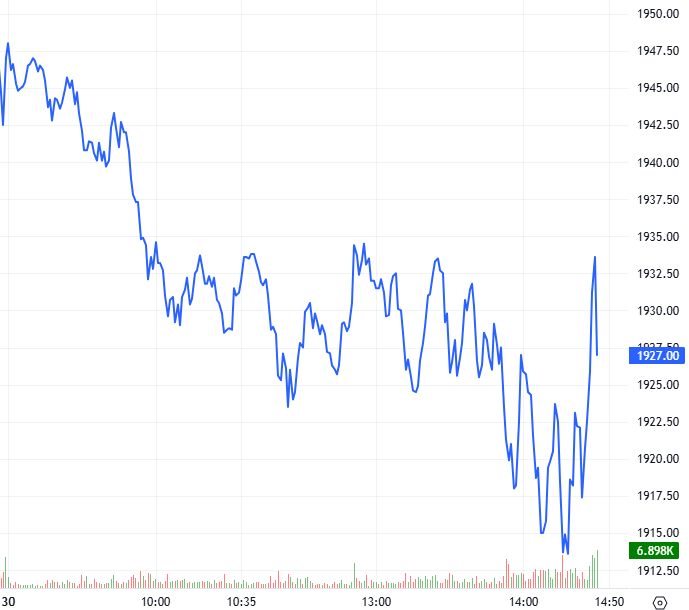 VN30 futures contracts experienced a unanimous decline during the trading session on October 30, 2025. Specifically, 41I1FB000 (I1FB000) dropped by 1.03% to 1,927 points; VN30F2512 (F2512) fell by 1.21% to 1,921.3 points; 41I1G3000 (G3000) decreased by 0.47% to 1,920 points; and 41I1G6000 (I1G6000) declined by 0.87% to 1,923.8 points. The underlying index, VN30-Index, closed at 1,925.18 points.