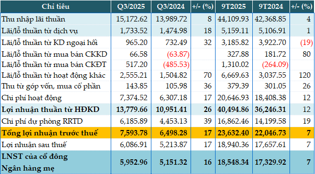 | BID’s Q3 and 9-month business results for 2025. Unit: Billion VND              Source: VietstockFinance |
