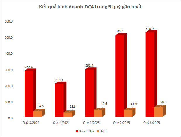 In the first nine months of the year, DC4 achieved revenue of over VND 1,303 billion and a net profit of VND 141 billion, both up more than 45% year-on-year. This result also helped DC4 fulfill nearly 82% of its full-year 2025 profit target.