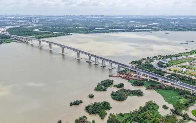 The Long Hung Bridge and its connecting roads will also be built as a major urban arterial road with a design speed of 80 km/h, featuring a cross-section of 6 motorized vehicle lanes and 2 non-motorized lanes. The total length of the project is nearly 12 km, with the Long Hung Bridge spanning over 2.3 km.