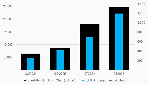 In Q3/2025, the revenue of the FPT Long Châu pharmacy and vaccination system hit 8.76 trillion VND, a 35% increase, with EBITDA profit reaching 420 billion VND, up 66%. This segment contributed 66% of total revenue and 79% of consolidated EBITDA profit for FPT Retail in the quarter.