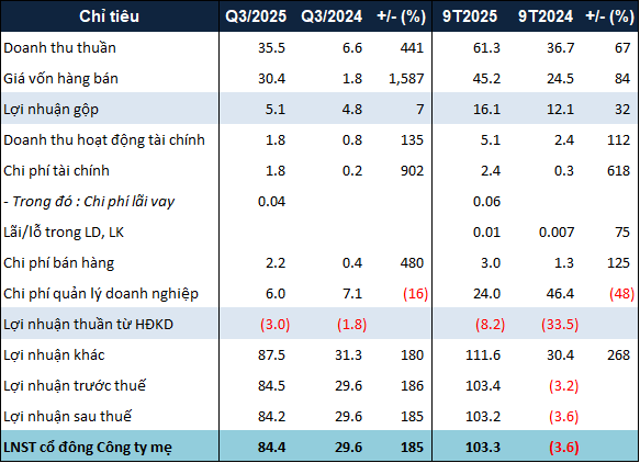 Specifically, TDH achieved a net revenue of less than 36 billion VND in Q3/2025, over five times higher than the same period last year. This includes 21.5 billion VND from the sale of goods and finished products, a category absent in the previous year.