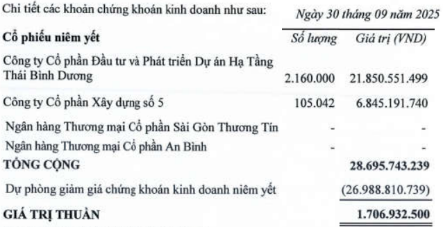 As of September 30, 2025, TDH had accumulated losses of 952.8 billion VND. Total assets remained stable at nearly 692 billion VND compared to the beginning of the year. Cash on hand decreased by almost 90%, falling to less than 5.7 billion VND. TDH also held listed equity securities worth nearly 28.7 billion VND, but with a depreciation provision of up to 27 billion VND, consistent with the beginning of the year.
