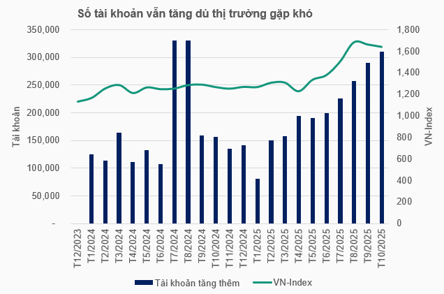 Thus, the number of accounts continued to rise despite the overall market sluggishness. The VN-Index closed the month at 1,639.65 points, slightly down from the end of September, accompanied by reduced liquidity.