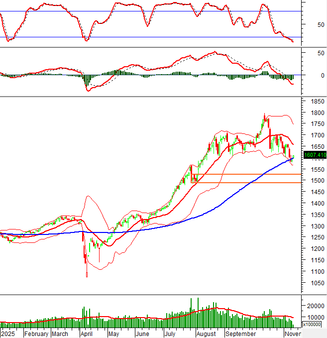 The VN-Index has rebounded, yet trading volume remains below its 20-day average, indicating lingering investor caution following the recent sharp decline. The Stochastic Oscillator continues to weaken in oversold territory. Should buy signals reemerge in upcoming sessions, the recovery outlook may strengthen.