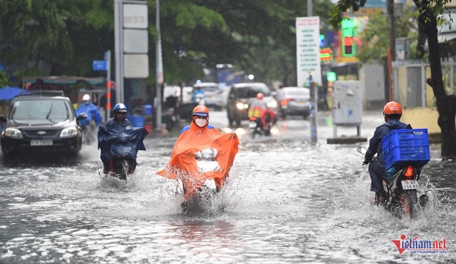 Flooding in Thảo Điền during heavy rain or high tides. Photo: Thanh Tùng |