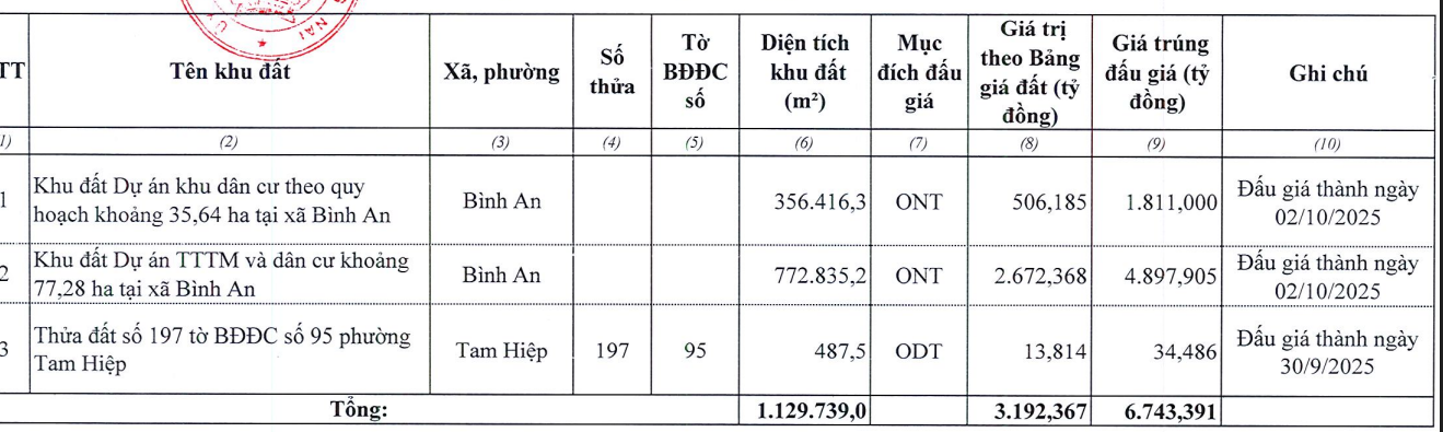 ![]() Nearly 2-hectare plot in Tran Bien Ward scheduled for auction in December 2025. Photo: Dong Nai Newspaper