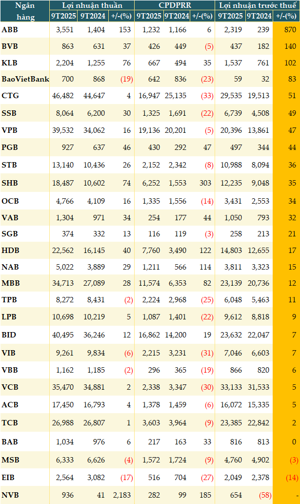 Dramatic Shifts in Q3/2025 Bank Profit Rankings: VietinBank Loses Top Spot, VPBank Re-enters Top 3, One Bank Surges 26-Fold