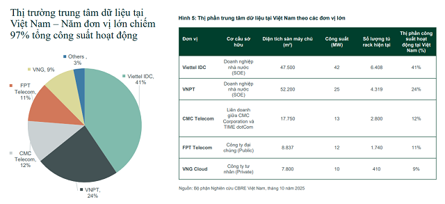 Currently, five major players—Viettel IDC, VNPT, CMC Telecom, FPT Telecom, and VNG Cloud—dominate the market. According to CBRE, the strong presence of local conglomerates provides Vietnam with a robust infrastructure foundation to attract international capital, especially as foreign investors seek new strategic locations beyond traditional markets.