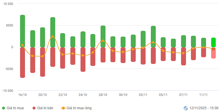 Foreign Capital Flow: Foreign investors continued to net sell in the November 12, 2025 session. If foreign investors maintain this action in upcoming sessions, market volatility may occur.