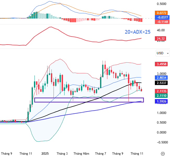 As mentioned in the October 2025 Crypto Report (Part 2), on the daily chart, after a pullback to retest the lower boundary (around $2.65-$2.75) of the broken Descending Triangle, the death cross between the 50-day SMA and 200-day SMA in early November 2025 reinforced a bearish mid-term outlook.