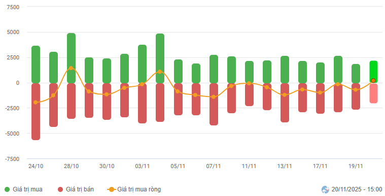 Foreign Capital Movement: Foreign investors turned net buyers in the November 20, 2025 session. If foreign investors maintain this action in the coming sessions, the outlook will be more optimistic.