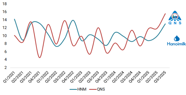 QNS spent VND 94 billion on promotions in Q3, 16 times higher than the same period last year, while agent commissions and sales support reached VND 25 billion, a fourfold increase. The selling expense-to-revenue ratio rose to 15.5%, surpassing any previous quarter.