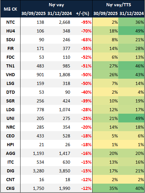 Top 20 Real Estate Companies with the Largest Debt Reduction in the First 9 Months of 2025 (Unit: Billion VND)