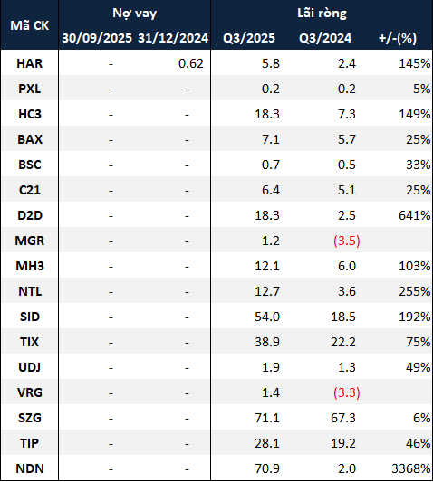 Hanoi Civil Construction Investment Corporation (UPCoM: XDH) saw the second-highest debt increase, with a balance of over VND 65 billion by September 30, 2025, nearly three times higher than at the beginning of the year. This was primarily due to a VND 130 billion credit agreement signed with BIDV in late December 2024. By the end of September, the debt from this agreement had exceeded VND 42 billion.