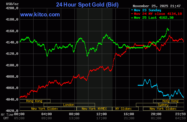 Global gold prices over the past 24 hours.