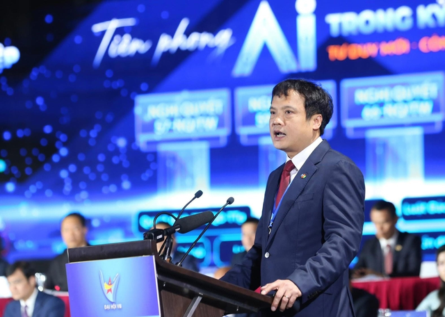 Mr. Nguyen Van Khoa, CEO of FPT Corporation and Vice Chairman of the Young Entrepreneurs Association (Term VII), delivers a speech at the National Congress.