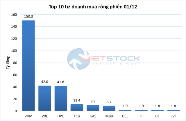 As the trading session closed on December 1, 2025, the market witnessed 136 stocks advancing, 116 declining, and 36 remaining unchanged. Foreign investors continued their net selling streak, offloading a total of VND 1.73 billion worth of shares.