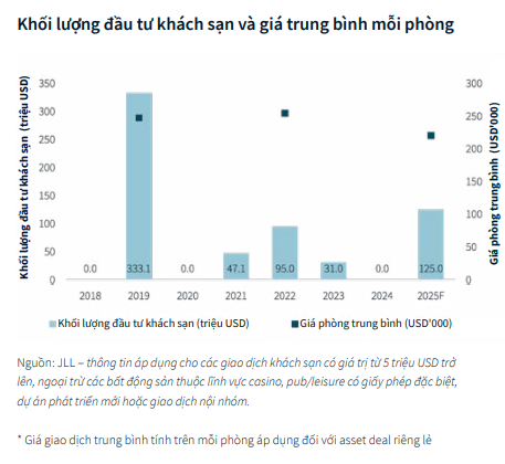 According to JLL, major transactions will continue focusing on prime hotel properties and luxury resorts in the coming years, attracting both domestic and international investors. Monitoring market dynamics and potential deals, JLL has revised its 2025 hotel investment volume forecast for Vietnam from $100 million to $125 million, reflecting confidence in market growth and increasing appeal to both local and foreign capital.